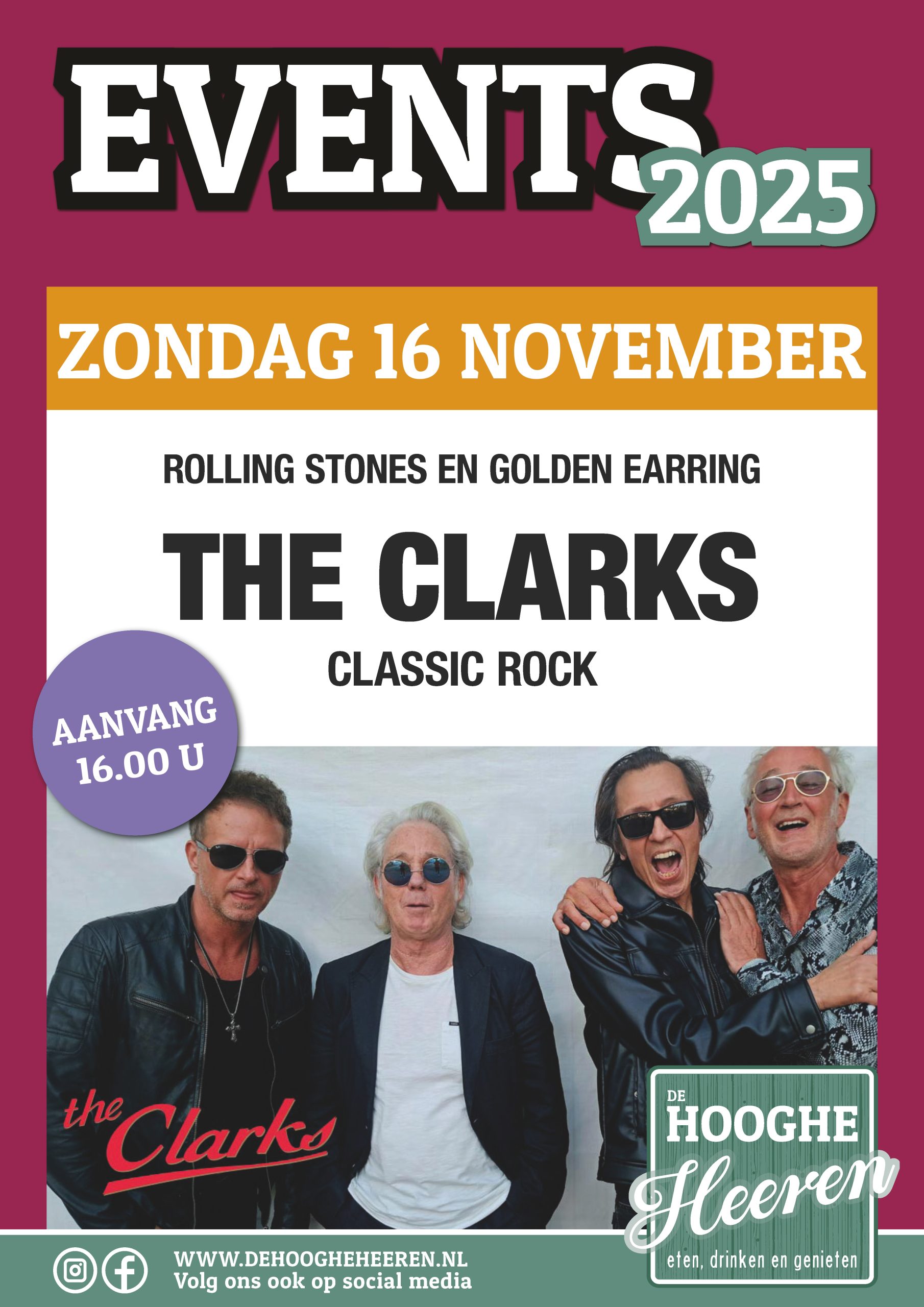 The Clarks zullen op 16 november ons podium samen betreden met Cesar Zuiderwijk van de originele Golden Earring! Een evenement waar je zeker bij wilt zijn om deze legende in actie achter het drumstel te zien!